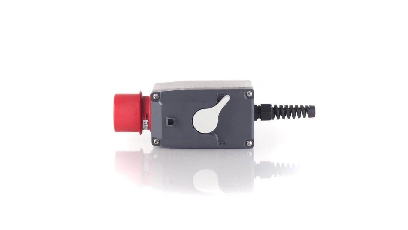 20P3107, wyłącznik silnikowy 3 f z wtykiem zasilającym 3P+N+Z 16A, sterowanie pokrętłem, zakres nastaw 6,3-10A