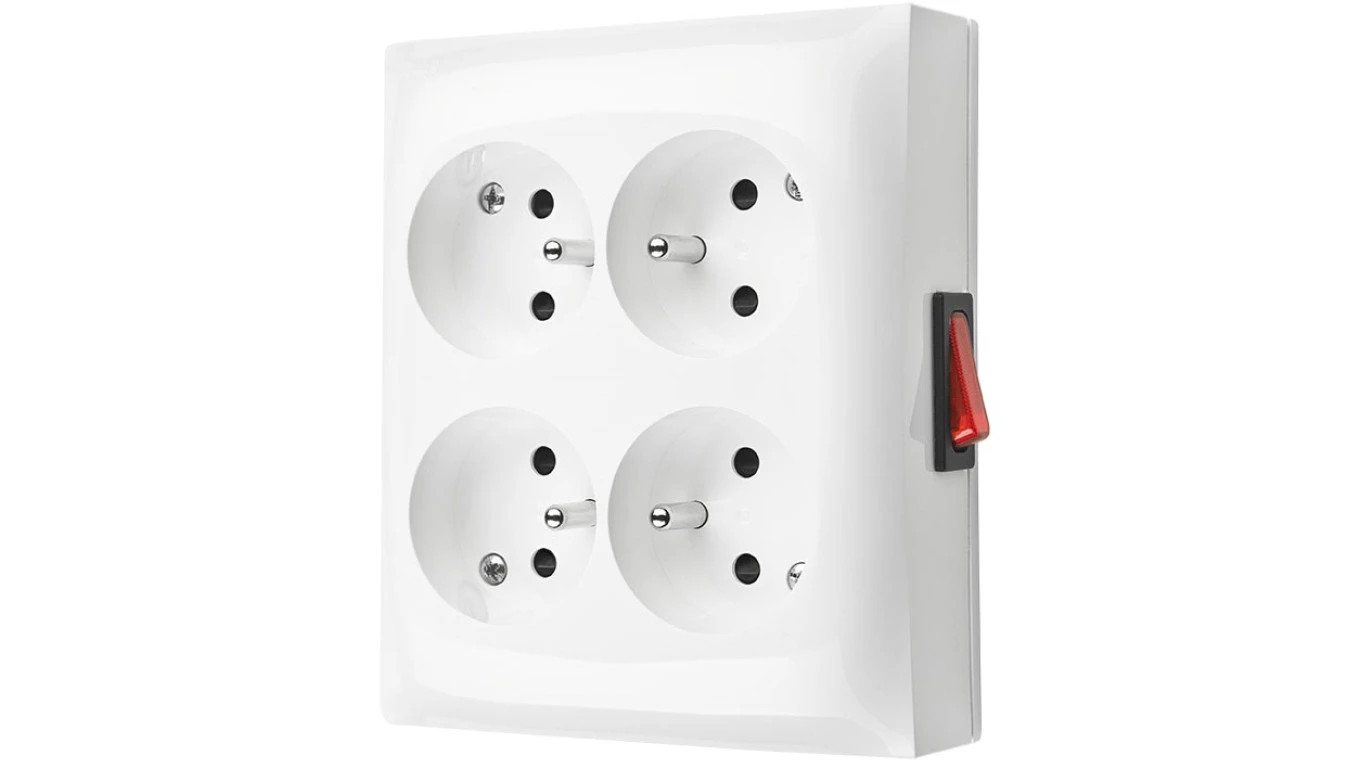 Aquaclick gniazdo NT 4-krotnie z wyłącznikiem biały