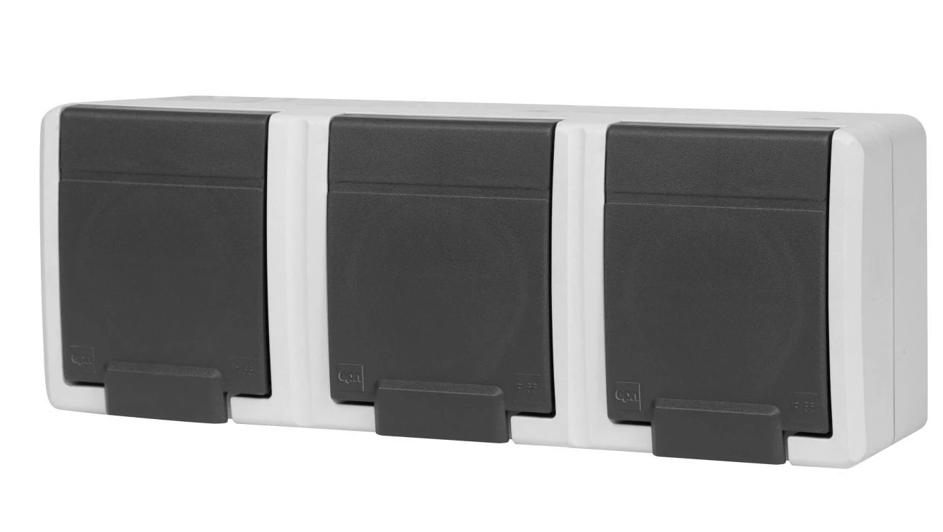 AQUANT 2K gniazdo natynkowe potrójne z uziemieniem 3x2P+Z IP55 szary 5043-10
