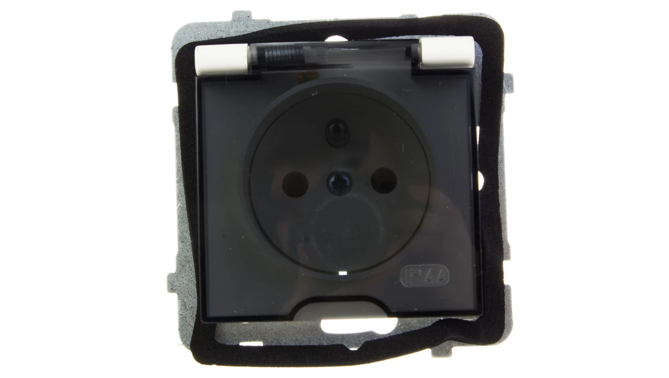 AS Gniazdo bryzgoszczelne z/u IP44 klapka przezroczysta ecru GPH-1GZ/m/27/d