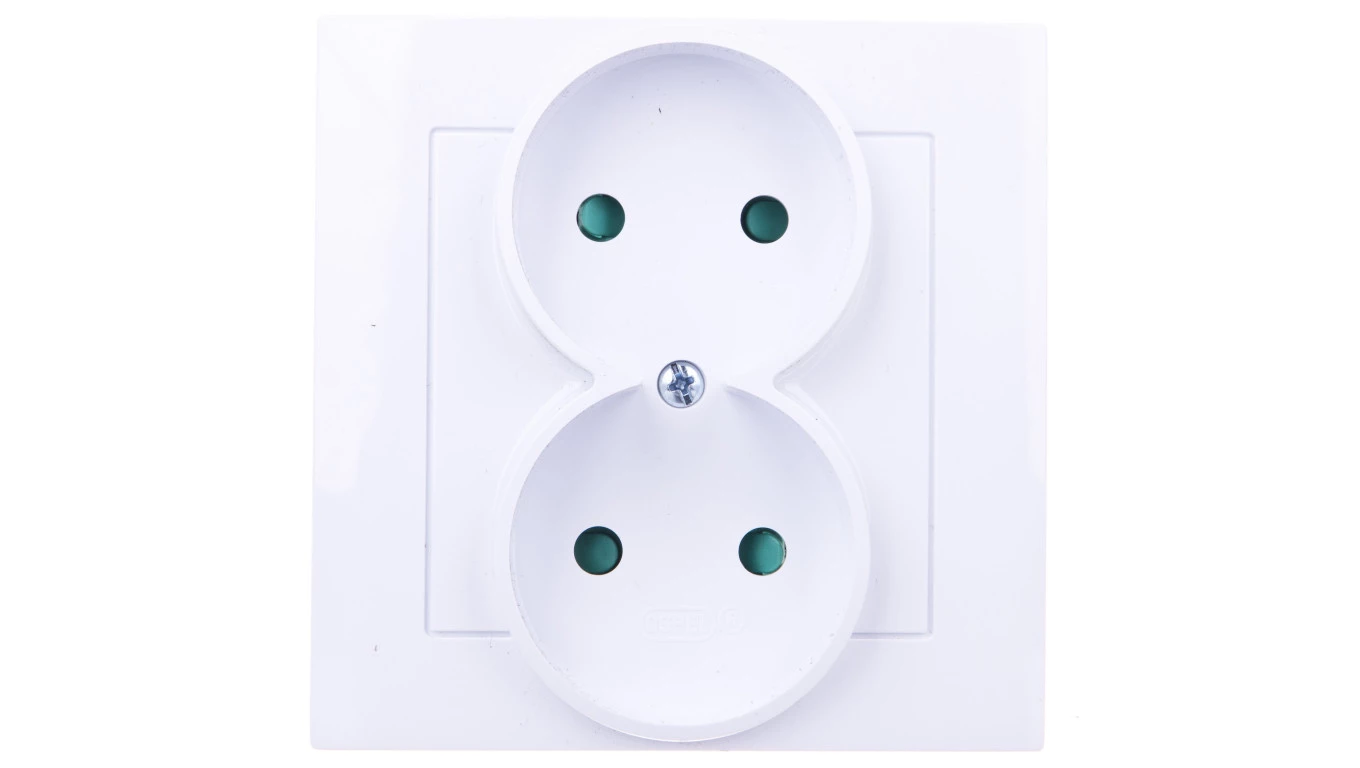 Gniazdo podwójne z przesłonami torów prądowych, biały, AS o numerze katalogowym GP-2GP/00 w kategorii Gniazda podtynkowe, Gniazda instalacyjne. Produkt wyprodukowany przez markę OSPEL, seria AS.