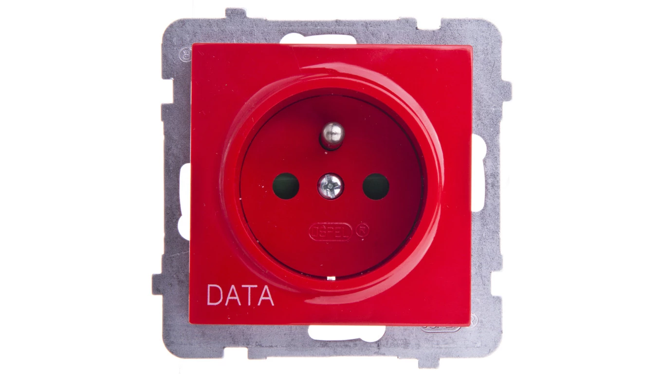 AS Gniazdo pojedyncze z/u DATA z przesłonami czerwone GP-1GZDP/m/00