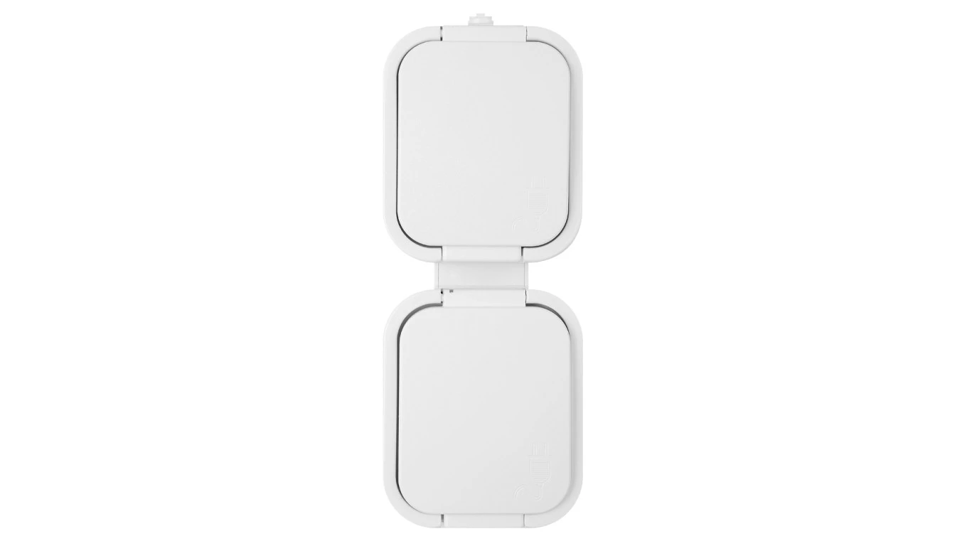 B2 Gniazdo podwójne 2P+Z bryzgoodporne z klapką w kolorze czarnym IP54 pionowe biały 00060278
