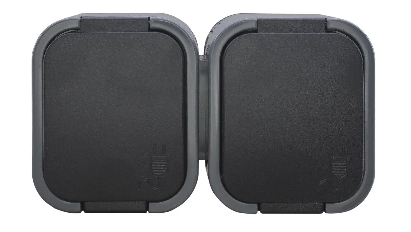 B2 Gniazdo podwójne 2P+Z bryzgoodporne z klapką w kolorze czarnym IP54 szary/czarny 00060278