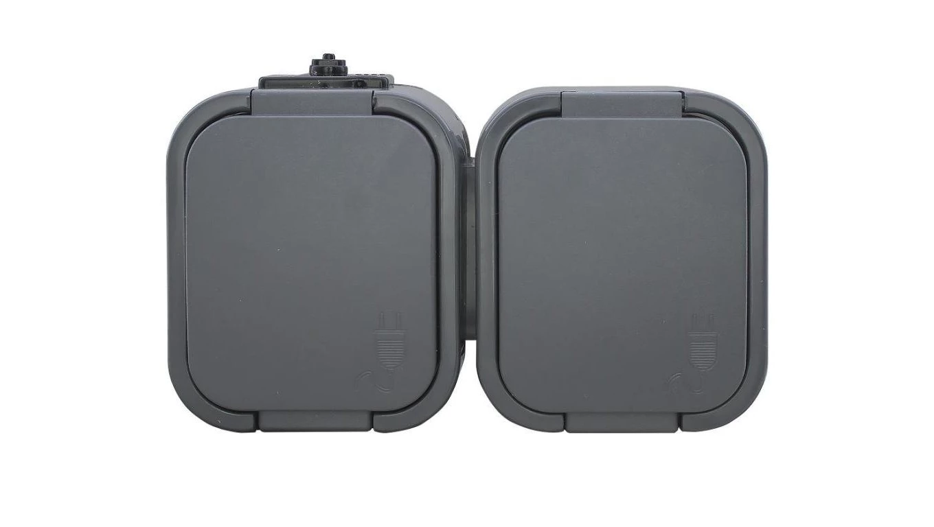 B2 Gniazdo podwójne 2P+Z SCHUKO bryzgoodporne z klapką w kolorze wyrobu IP54 szary 00060278
