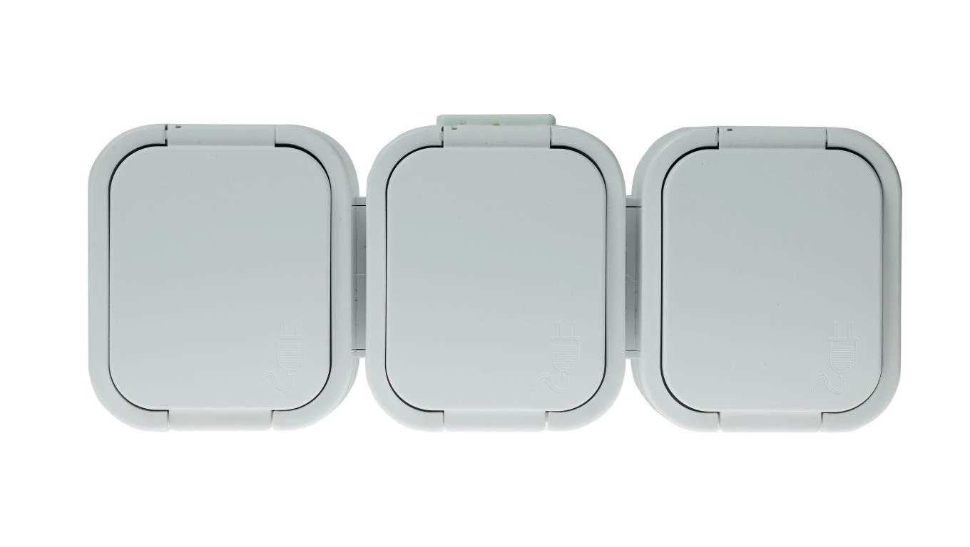 B2 Gniazdo potrójne 3x2P+Z SCHUKO bryzgoodporne z klapką w kolorze wyrobu IP54