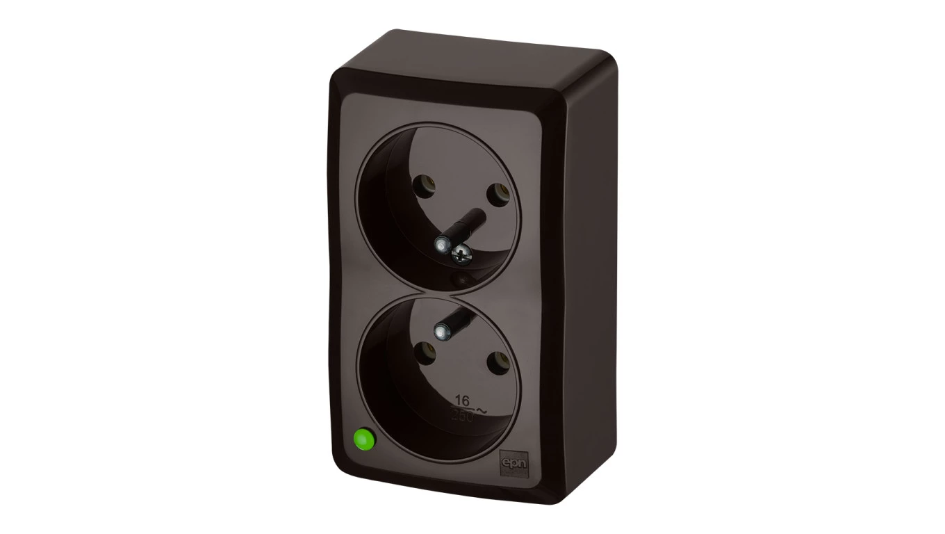 BERG Gniazdo podwójne z uziemieniem n/t 2x2P+Z 16A brązowy 3743-05