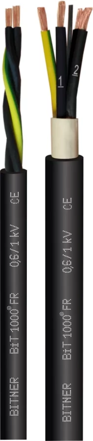 Kabel BiT 1000 FR to giętki i ognioodporny przewód sterowniczy o napięciu znamionowym 0,6/1 kV, wykonany z miedzianych żył klasy 5. Izolacja i powłoka wykonane są ze specjalnego PVC o podwyższonej odporności na ogień oraz promieniowanie UV.