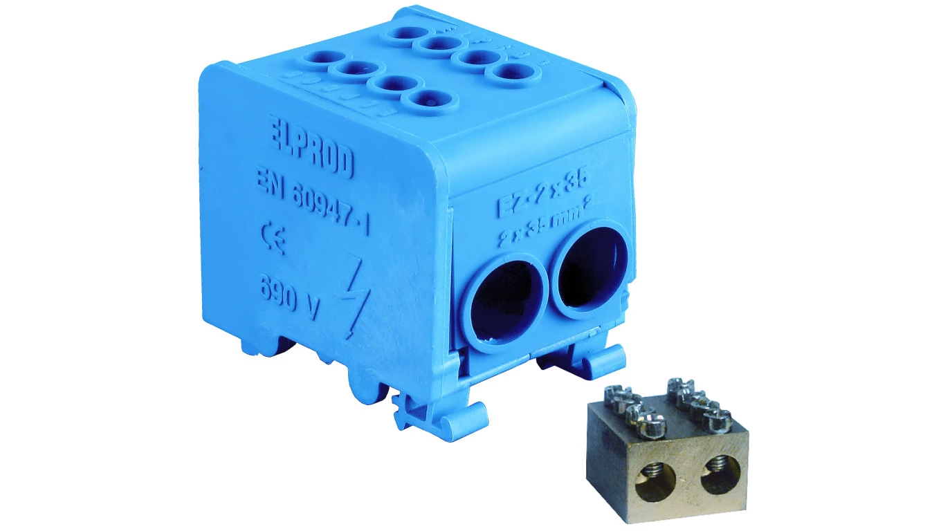 Blok rozdzieczy 1-torowy (3x16mm²/3x16mm²) LZ1*35/35 mocowanie na TS 35, niebieski 84169003