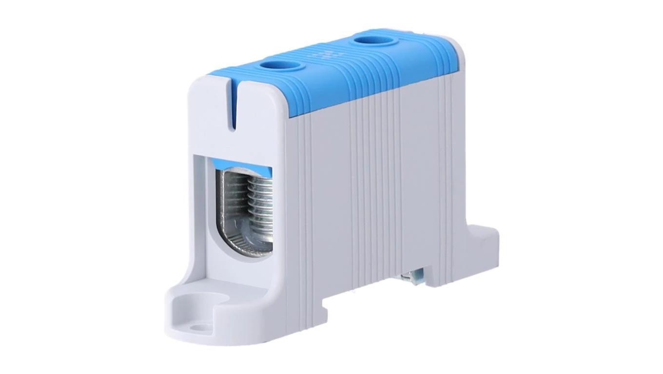 Blok rozdzielczy ‑ odgałęźny 1 ‑ polowy 16-95mm2 niebieski montaż płaski FJ-E95/B 85824