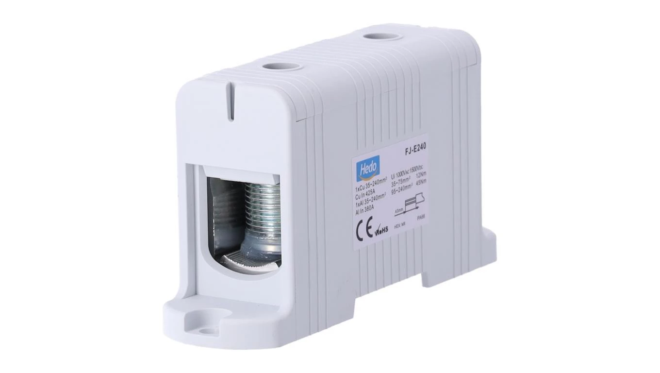 Blok rozdzielczy ‑ odgałęźny 1 ‑ polowy 35-240mm2 szary montaż płaski FJ-E240 85829