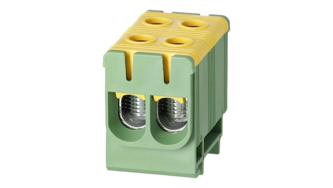 Blok rozdzielczy ‑ odgałęźny 2 ‑ polowy 2,5-50mm2 żółto-zielony montaż płaski FJ-E50/2/D 1000056