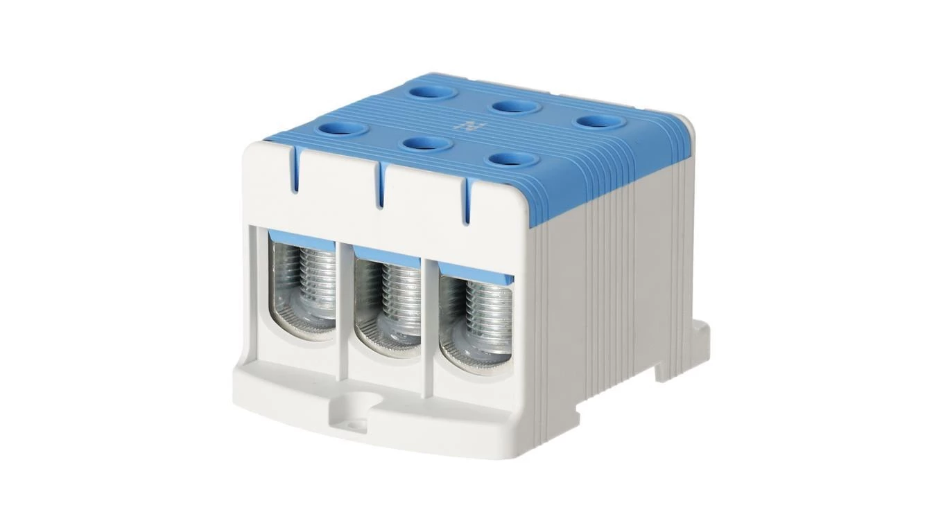 Blok rozdzielczy ‑ odgałęźny 3 ‑ polowy 35-150mm2 niebieski montaż płaski FJ-E150/3/B 1000070