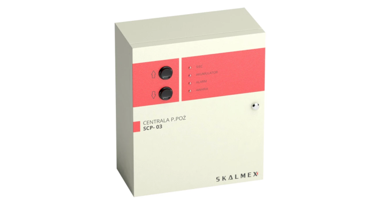 Centrala przeciwpożarowa sterująca i zasilacz do systemów rozprzestrzeniania dymu i ognia, SKALMEX SCP-03