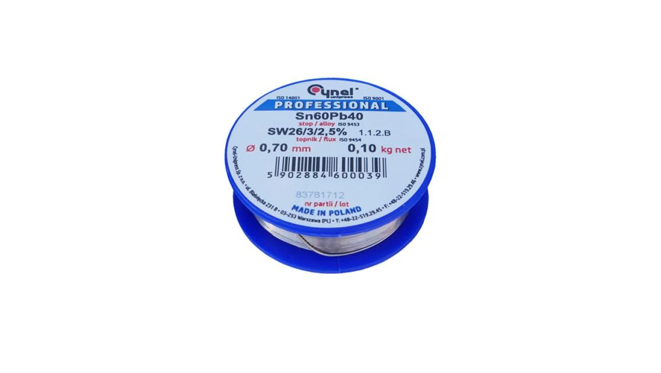 CYNEL UNIPRESS Cyna 0,70mm 100g Sn60Pb40 SW26/3/2.5 spoiwo lutownicze PROFESSIONAL