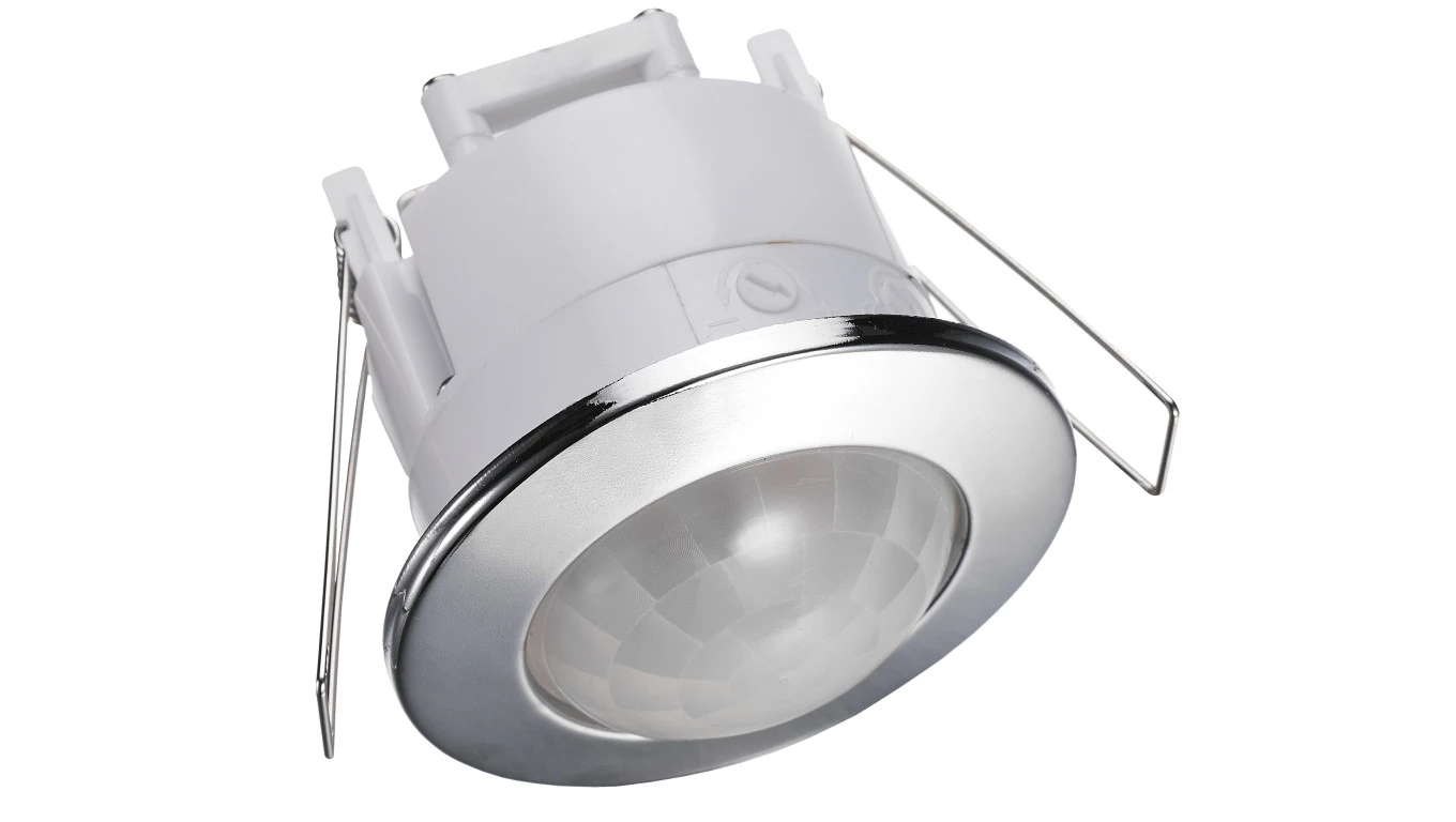 CZUJNIK RUCHU SUFITOWY DO WBUDOWANIA LED 360 STOPNI SREBRNY PIR PODTYNKOWY DO SUFITÓW PODWIESZANYCH WPUSZCZANY NA PODCZERWIEŃ