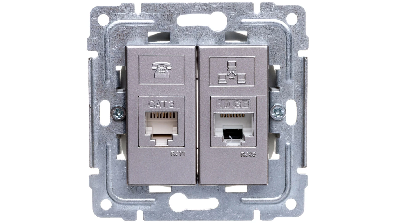 DANTE Gniazdo teleinformatyczne RJ45 kat.5e nieekranowane + RJ11 inox 454169