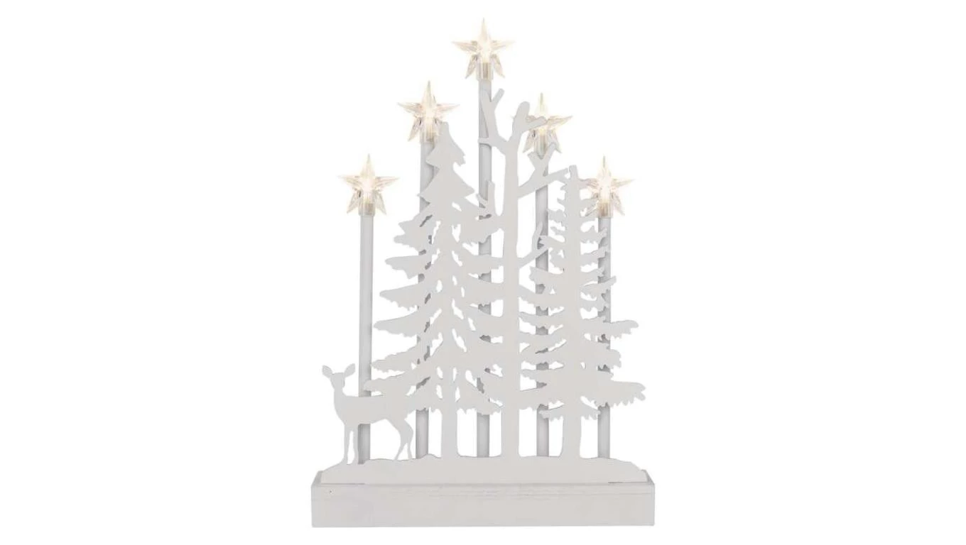 Dekoracje - świecznik biały 5 LED 35,5 cm, 2x AA ciepła biel, IP20, timer DCAW13