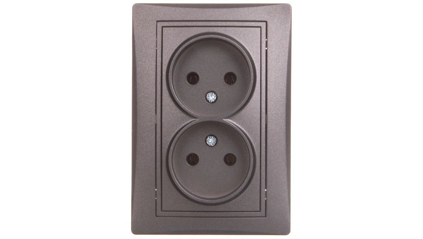 DOMO Gniazdo podwójne bez uziemienia kompletne śrubowe 16A 250V grafit 011280141 24918