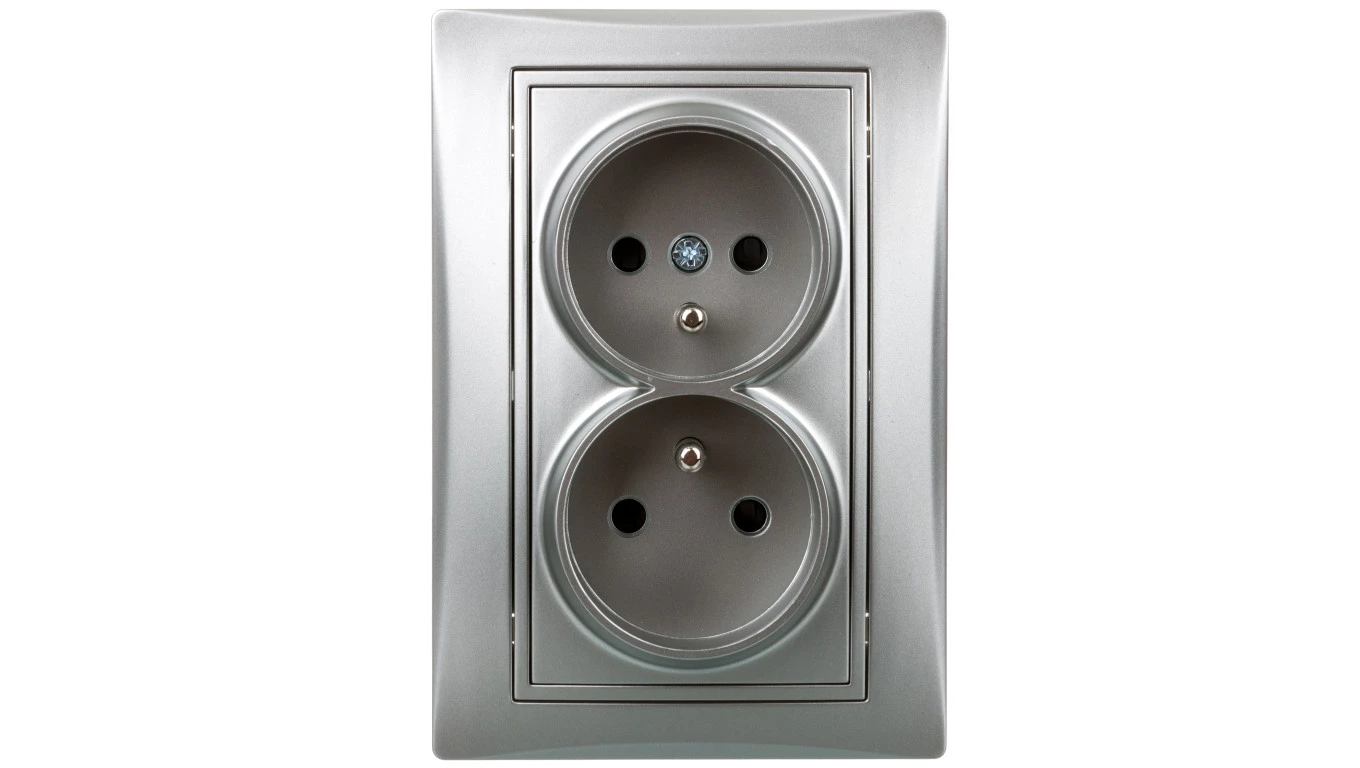 DOMO Gniazdo podwójne kompletne ochrona styków śrubowe 16A 250V srebrny 011260143 24856