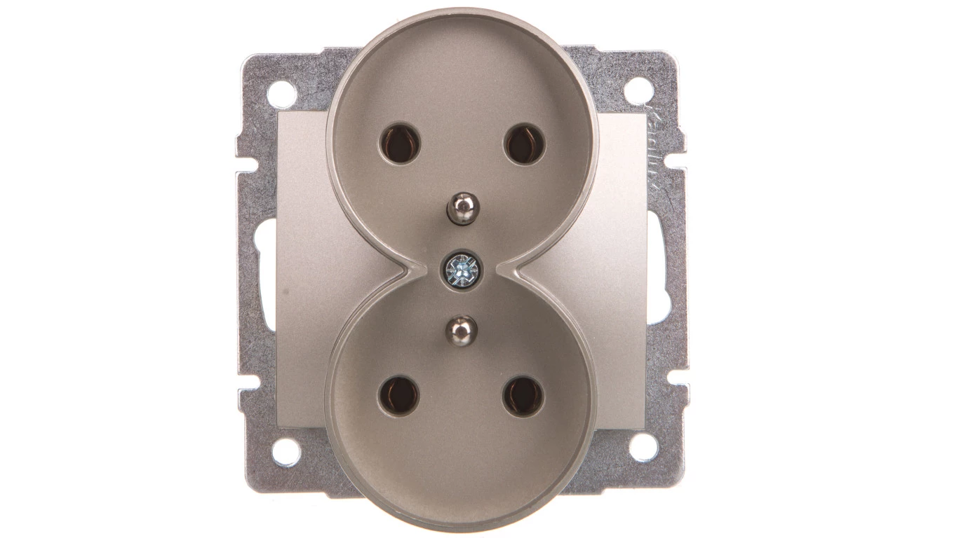 DOMO Gniazdo podwójne z uziemieniem śrubowe 16A 250V szampański 011253150 25032