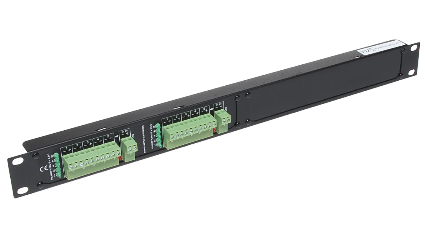 Dystrybutor zasilania (łączówka, rozgałęźnik) 2-we/10wy max.15VDC 10x2.5A Rack 19”