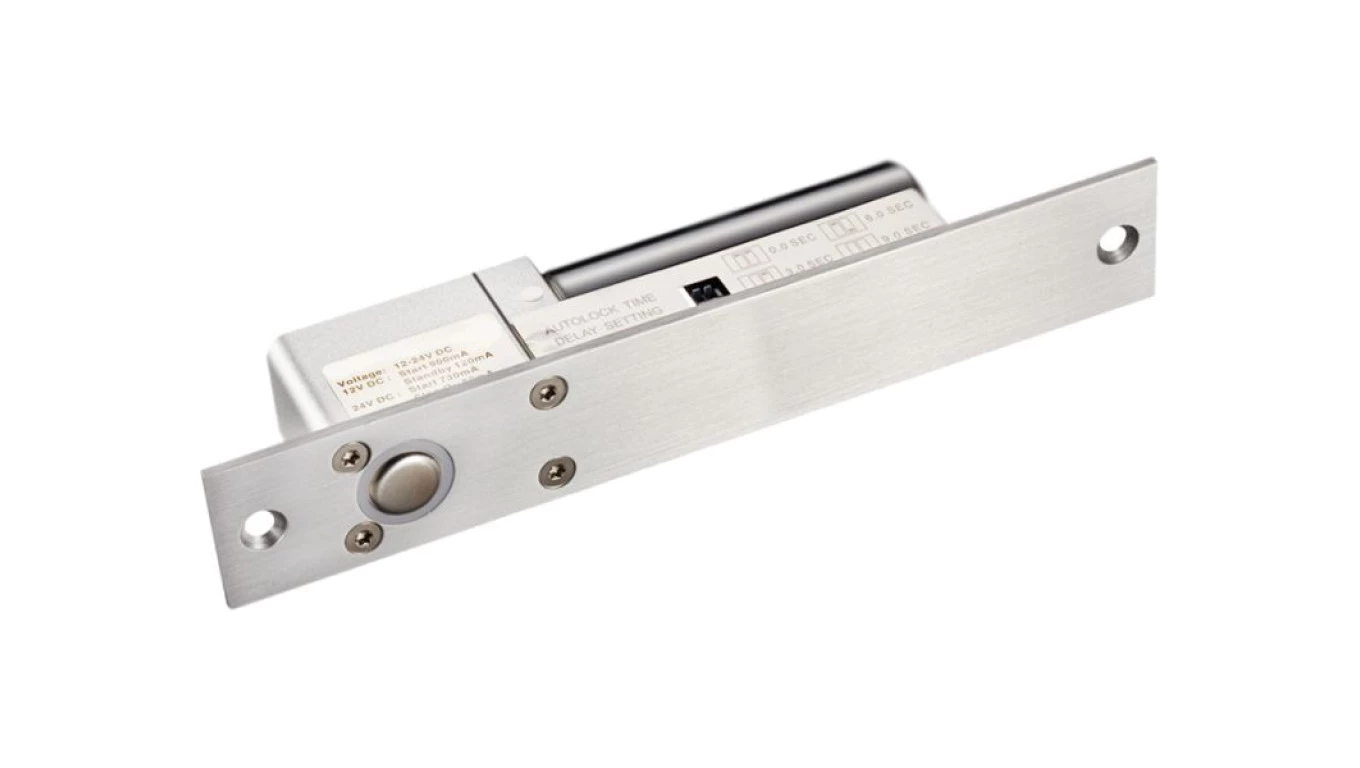 Elektrozamek trzpieniowy rewersyjny siła trzymania 800 kg, sygnalizacja stanu drzwi, zwłoka czasowa, zasilanie 12V / 24V DC