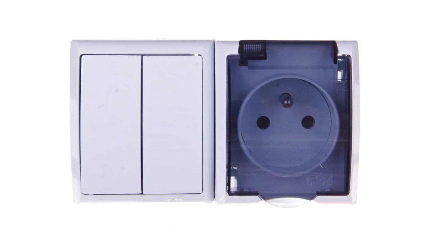 FALA Łącznik hermetyczny świecznikowy + gniazdo z/u z klapką przezroczystą biały ZH-Ł2G/00/d