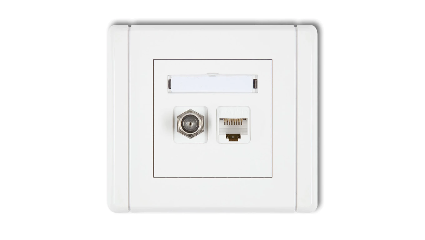 FLEXI Gniazdo antenowe pojedyncze typu F (SAT) + gniazdo komputerowe pojedyncze 1xRJ45 kat. 5e 8-stykowe biały FGFK-1