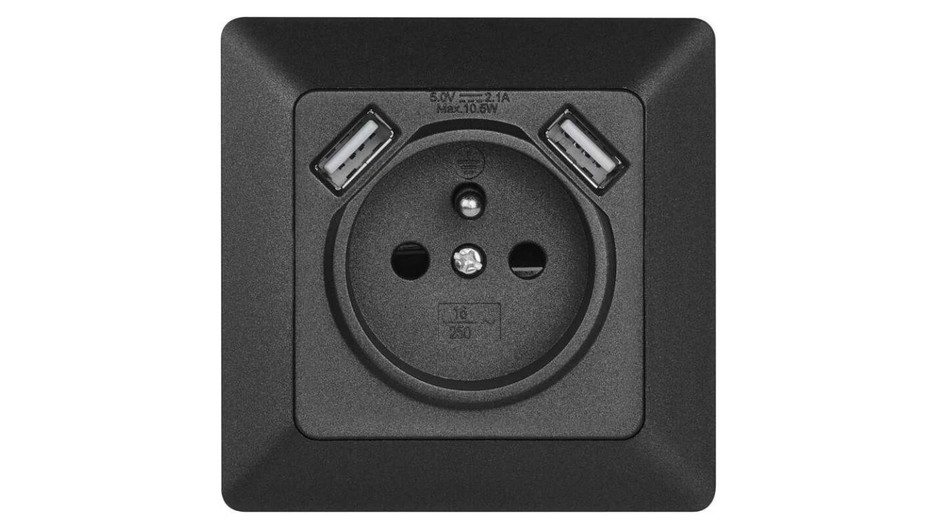 Gniazdo FRENCH z USB 2,1A max. IP20 antracyt EMOS A6000.2
