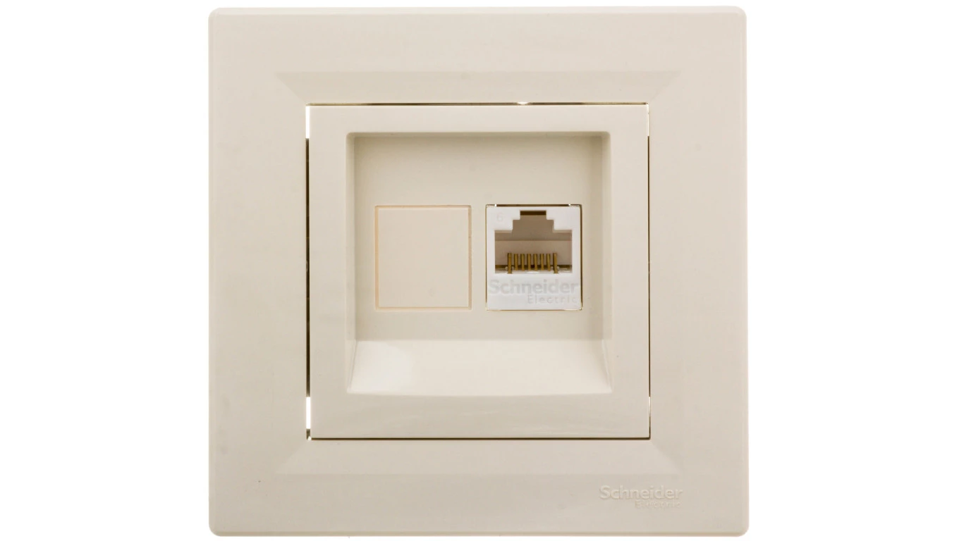 Gniazdo komputerowe kat.6, kremowe ASFORA o numerze katalogowym EPH4700123 w kategorii Gniazda teleinformacyjne, multimedialne, Łączniki i gniazda instalacyjne. Produkt wyprodukowany przez markę SCHNEIDER ELECTRIC, seria ASFORA.