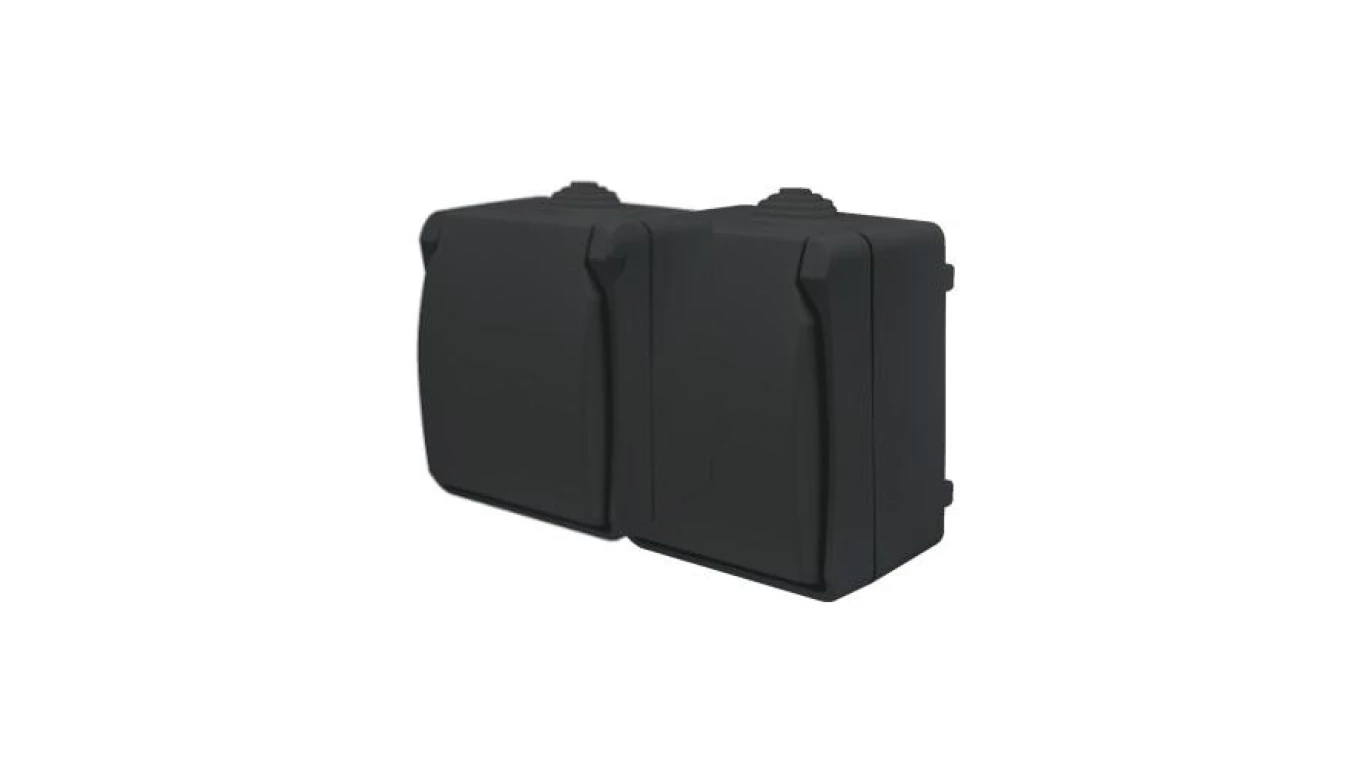 Gniazdo podwójne z uziemieniem natynkowe z klapką Aqua Plus IP44 antracyt / 40334