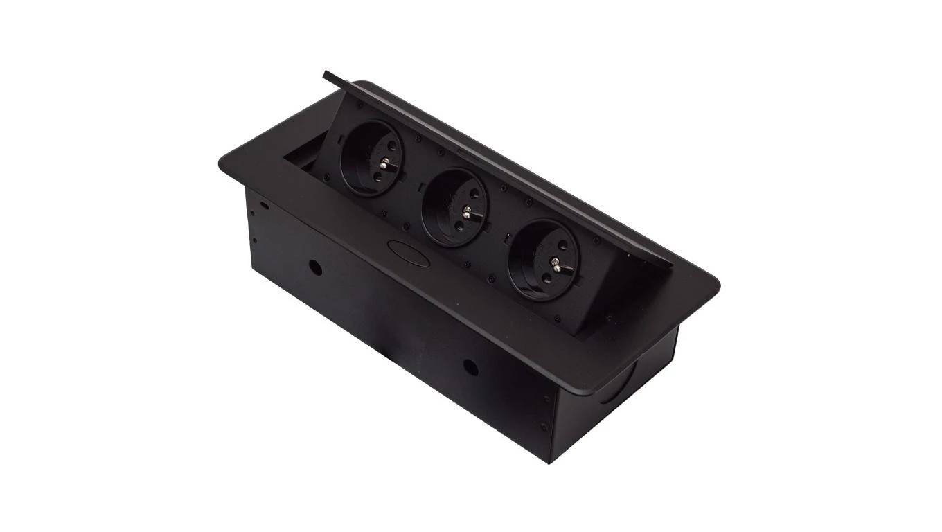 GNIAZDO POTRÓJNE CHOWANE W BLAT NABLATOWE GNIAZDKO GB3PL-BLACK