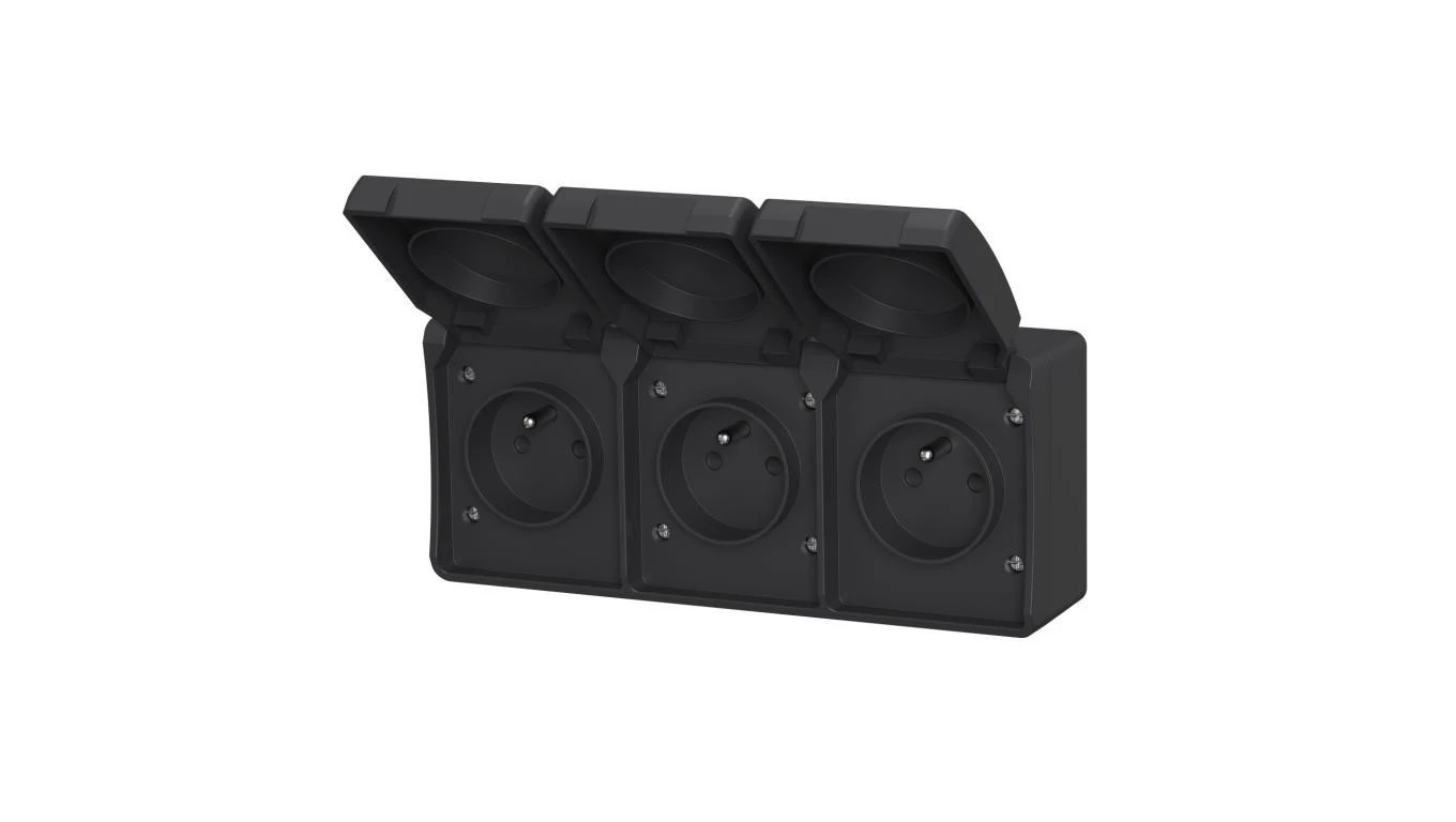 Gniazdo potrójne z uziemieniem natynkowe z klapką Aqua Plus IP44 antracyt / 40335