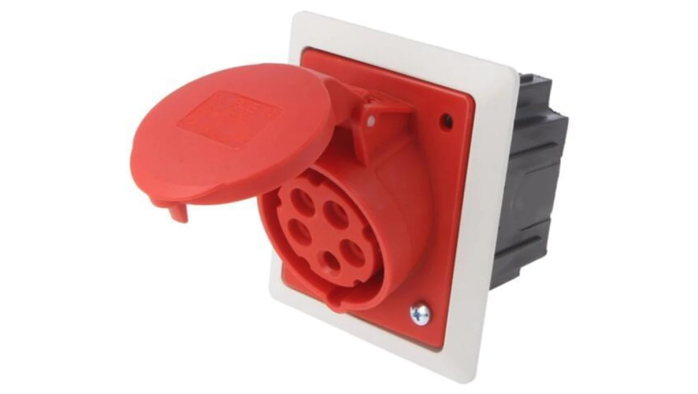 Gniazdo tablicowe z puszką 16A 5P 400V /80x97/ czerwone IP44 TWIST 415-6pkr