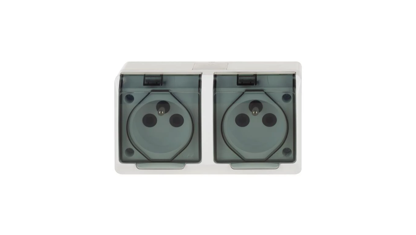 Hermes Gniazdo hermetyczne podwójne natynkowe z uziemieniem 16A IP44 z klapką dymną białe GNT 0322-01