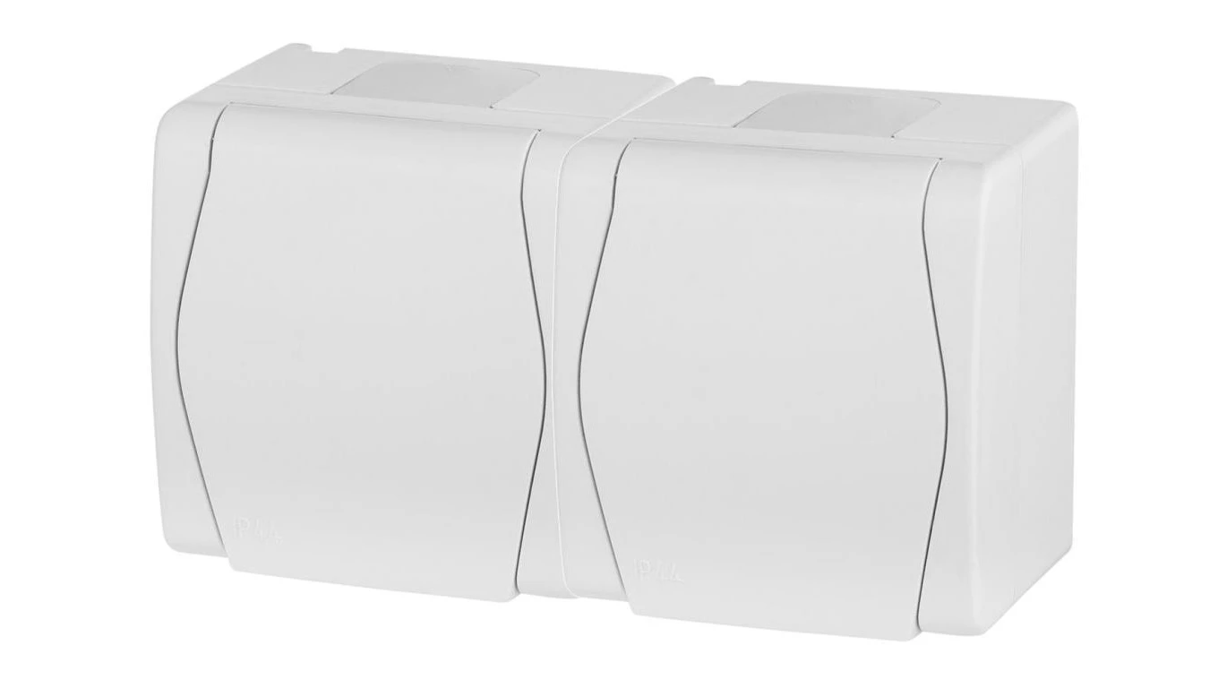 Hermes2 Gniazdo hermetyczne podwójne z/u 16A IP44 z klapką pełną białe 1022-00