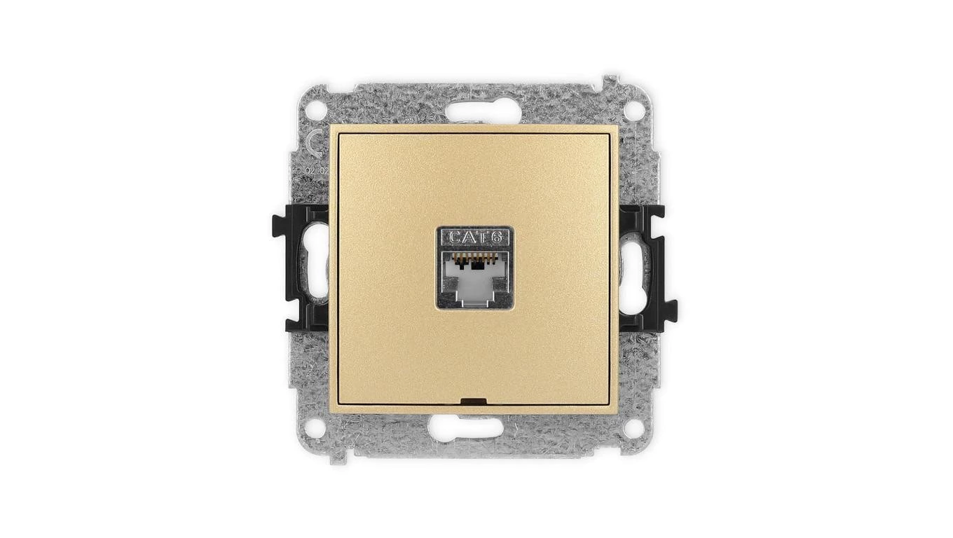 ICON Mechanizm gniazda komputerowego pojedynczego 1xRJ45, kat. 5e, ekranowane, 8-stykowy, bez pola opisowego złoty 29IGKBO-1e