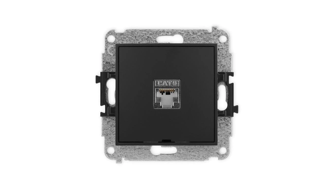 ICON Mechanizm gniazda komputerowego pojedynczego 1xRJ45, kat. 6, ekranowane, 8-styk, bez pola opisowego czarny mat 12IGKBO-5