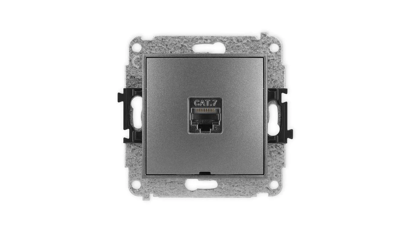 ICON Mechanizm gniazda komputerowego pojedynczego 1xRJ45, kat. 7, ekranowane, 8-stykowy, bez pola opisowego grafitowy 11IGKBO-9