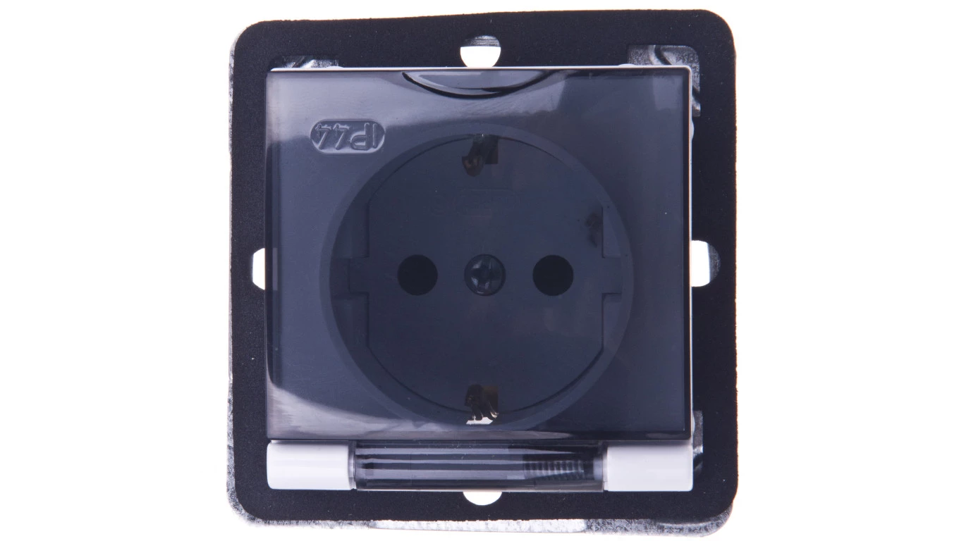 IMPRESJA Gniazdo bryzgoszczelne z/u Schuko IP44 z przesłonami klapka przezroczysta białe GPH-1YSP/m/00/d