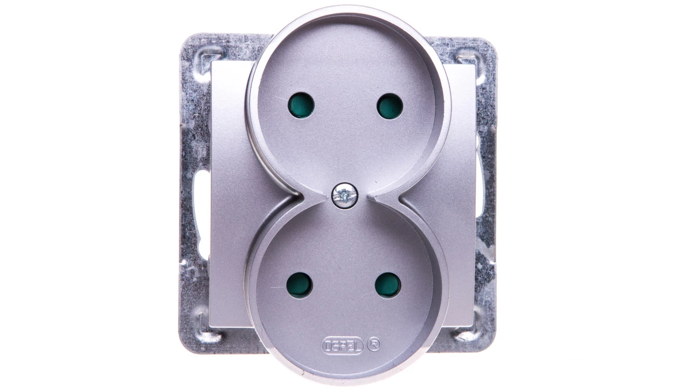 IMPRESJA Gniazdo podwójne b/u z przesłonami srebrne GP-2YRP/m/18