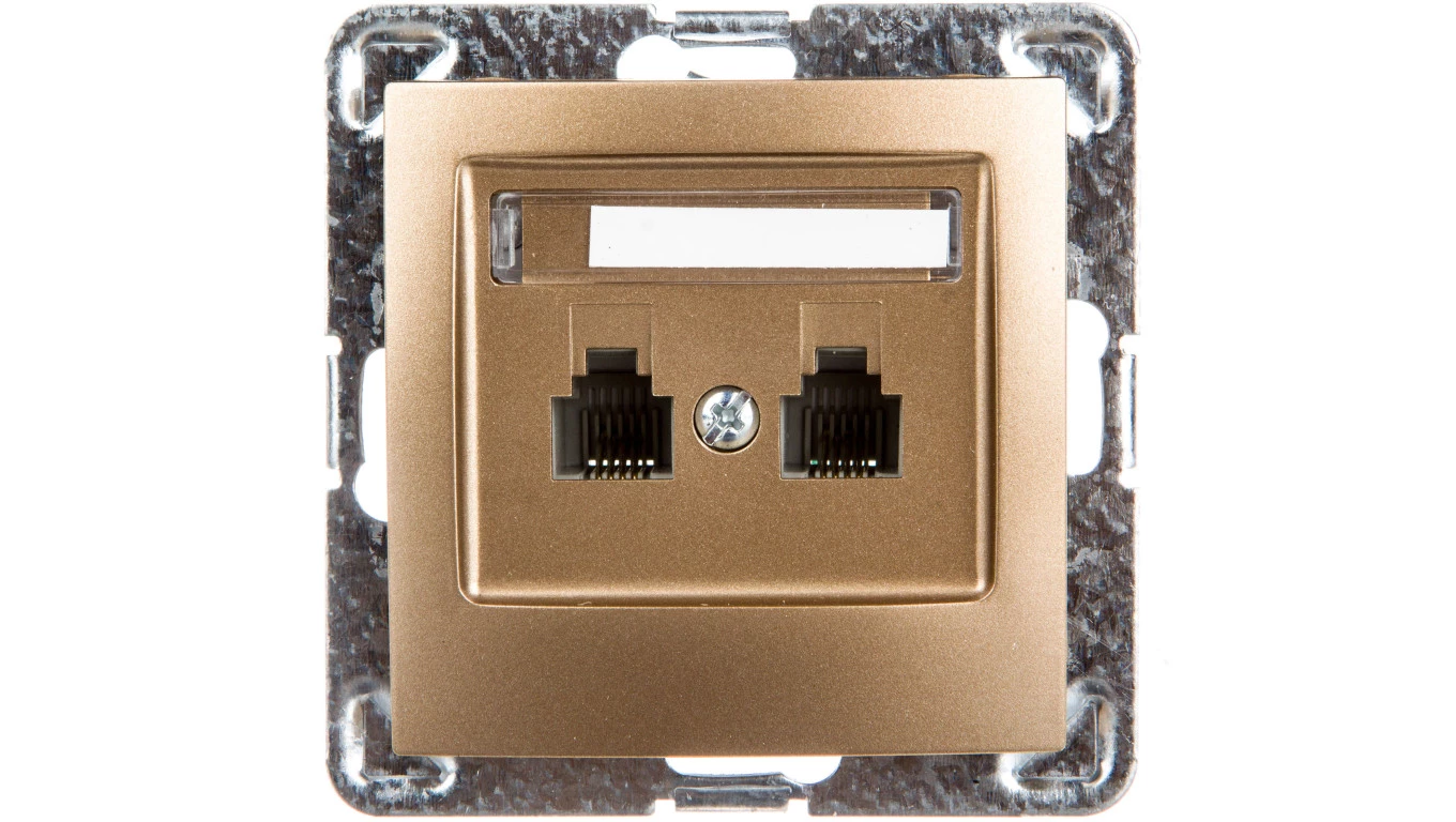 IMPRESJA Gniazdo telefoniczne podwójne RJ11 niezależne złoty metalik GPT-2YN/m/28