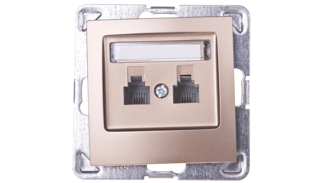 IMPRESJA Gniazdo telefoniczne podwójne RJ11 równoległe złoty metalik GPT-2YR/m/28