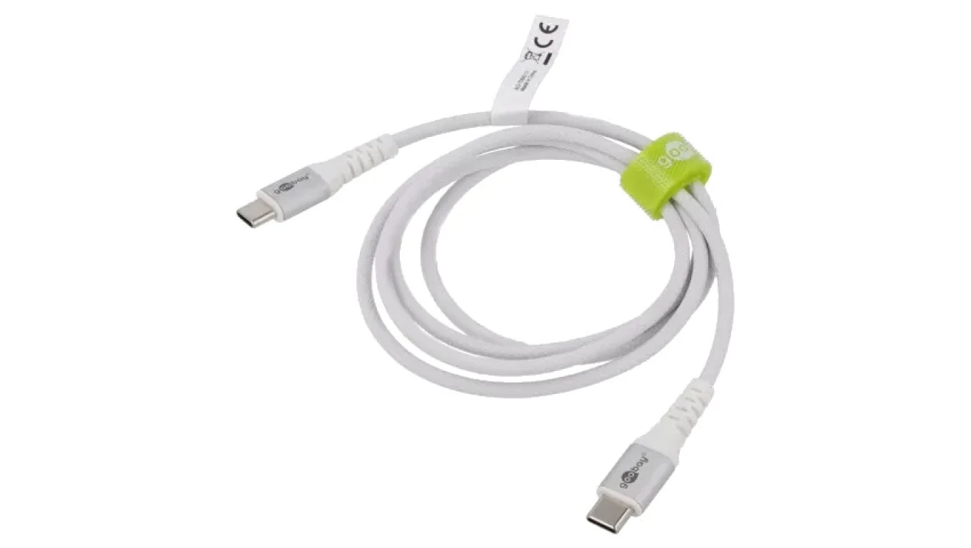 Kabel USB-C™ tekstylny, elastyczny, z metalowymi złączami, biały, 70193 /1m/