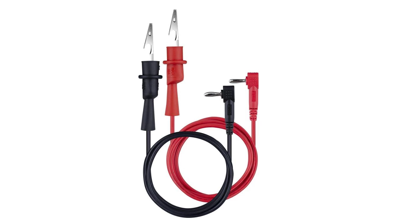 Kable przewody pomiarowe do miernika (wtyk kątowy typu BANAN / złącze typu KROKODYL) HQ 2x 0,85m czarny + czerwony
