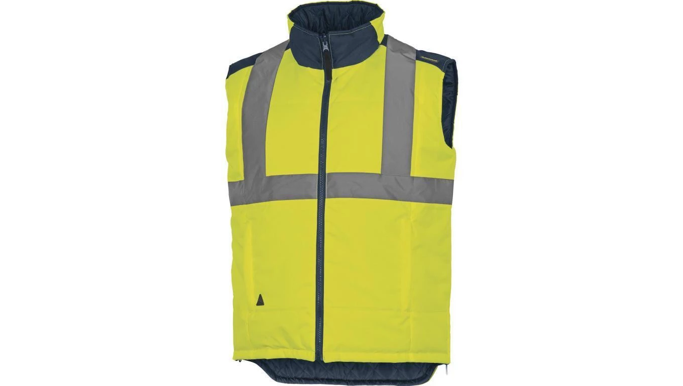 Kamizelka ostrzegawcza dwustronna z poliestru Oxford powlekanego poliuretanem żółta fluo-granatowa rozmiar L CORPFIDJIHVJMGT