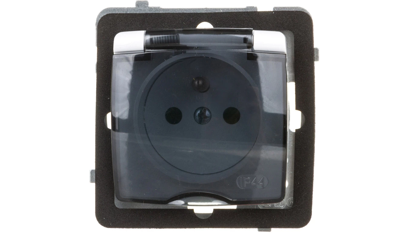 KARO Gniazdo bryzgoszczelne z/u IP44 z przesłonami klapka przezroczysta białe GPH-1SZP/m/00/d