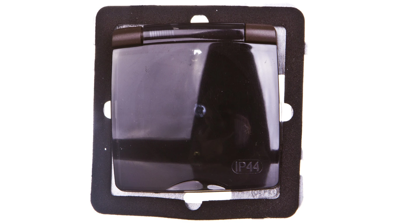 KARO Gniazdo bryzgoszczelne z/u Schuko IP44 klapka przezroczysta czekoladowy metalik GPH-1SS/m/40/d