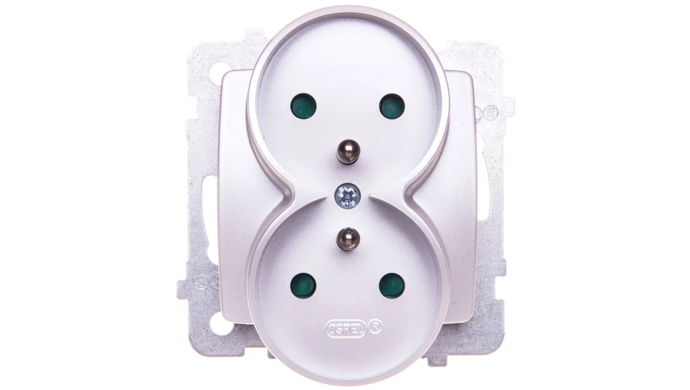 KARO Gniazdo podwójne z/u z przesłonami srebrny perłowy GP-2SRZP/m/43